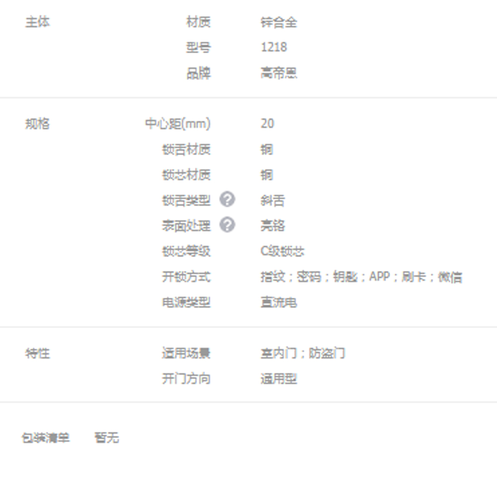 智能门锁商品分类